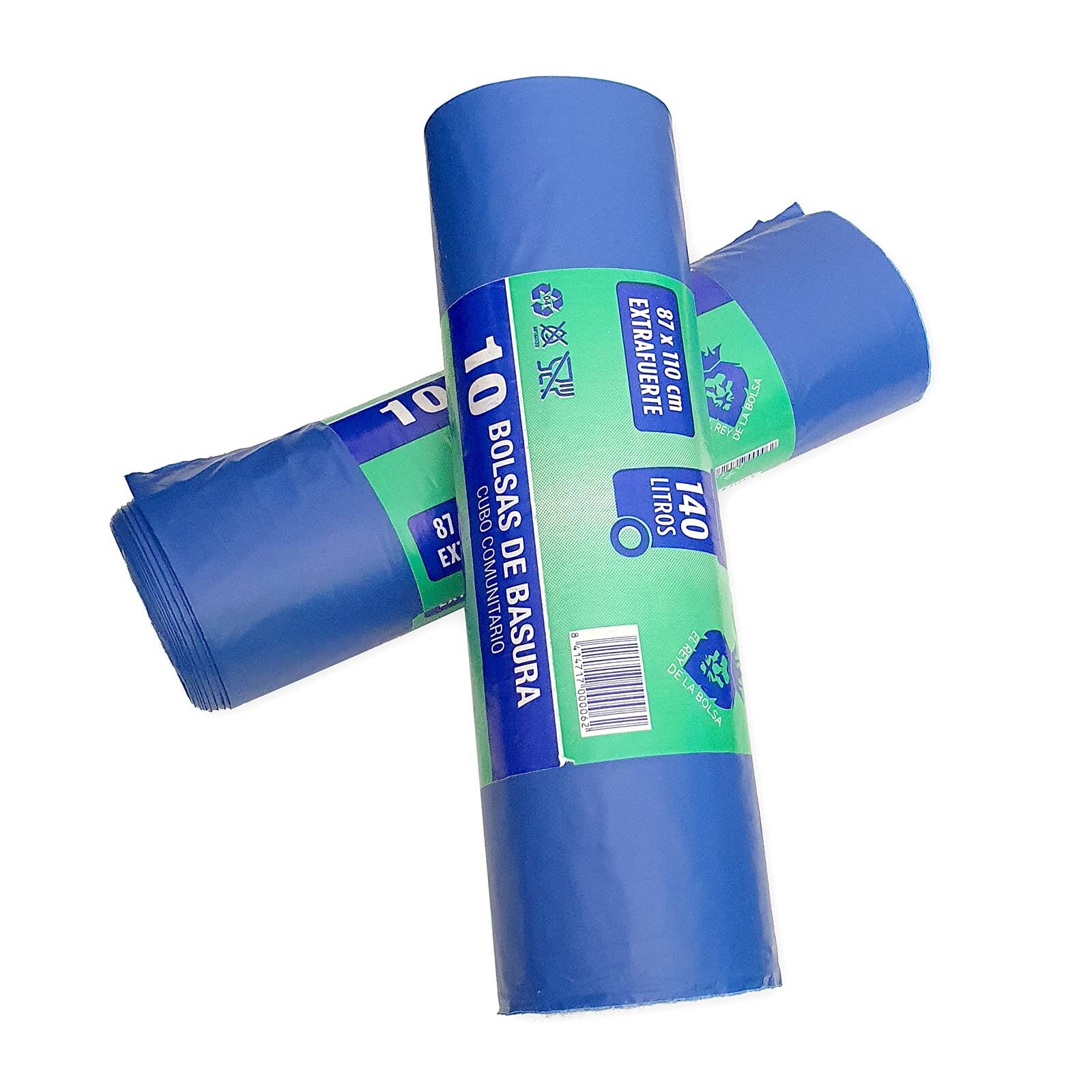 Bolsas de Basura Reciclable Extrafuerte 20 Unidades 140 Litros. 110cm x 87cm 100% Sostenible, Comunidad, Super Resistentes, Antigoteo. Especial Hostelería, Jardín, Mudanzas